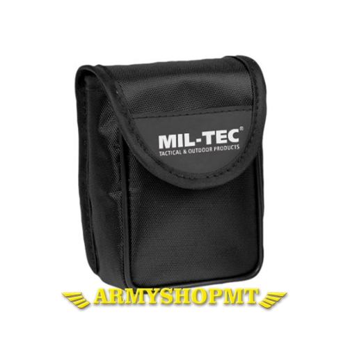 Malý praktický skladací dalekohľad od firmy MIL-TEC v pogumovanom prevedení so šnúrkou na krk. Priemer objektívu 21 mm, 8-násobné zväčšenie /priblíženie/, zorné pole 126m/1000m, jemné nastavenie dioptrií. Šošovky sú potiahnuté elastickým materiálom, ktorý chráni ďalekohľad pred možným poškodením v dôsledku pádu. Ďalekohľad je dodávaný s nylonovým púzdrom, ktoré sa dá pripevniť na opasok. Hmotnosť s púzdrom 200 g.